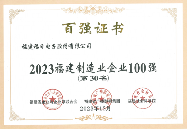 福日電子榮耀再續(xù),連續(xù)五年入圍福建省制造企業(yè)100強(qiáng)